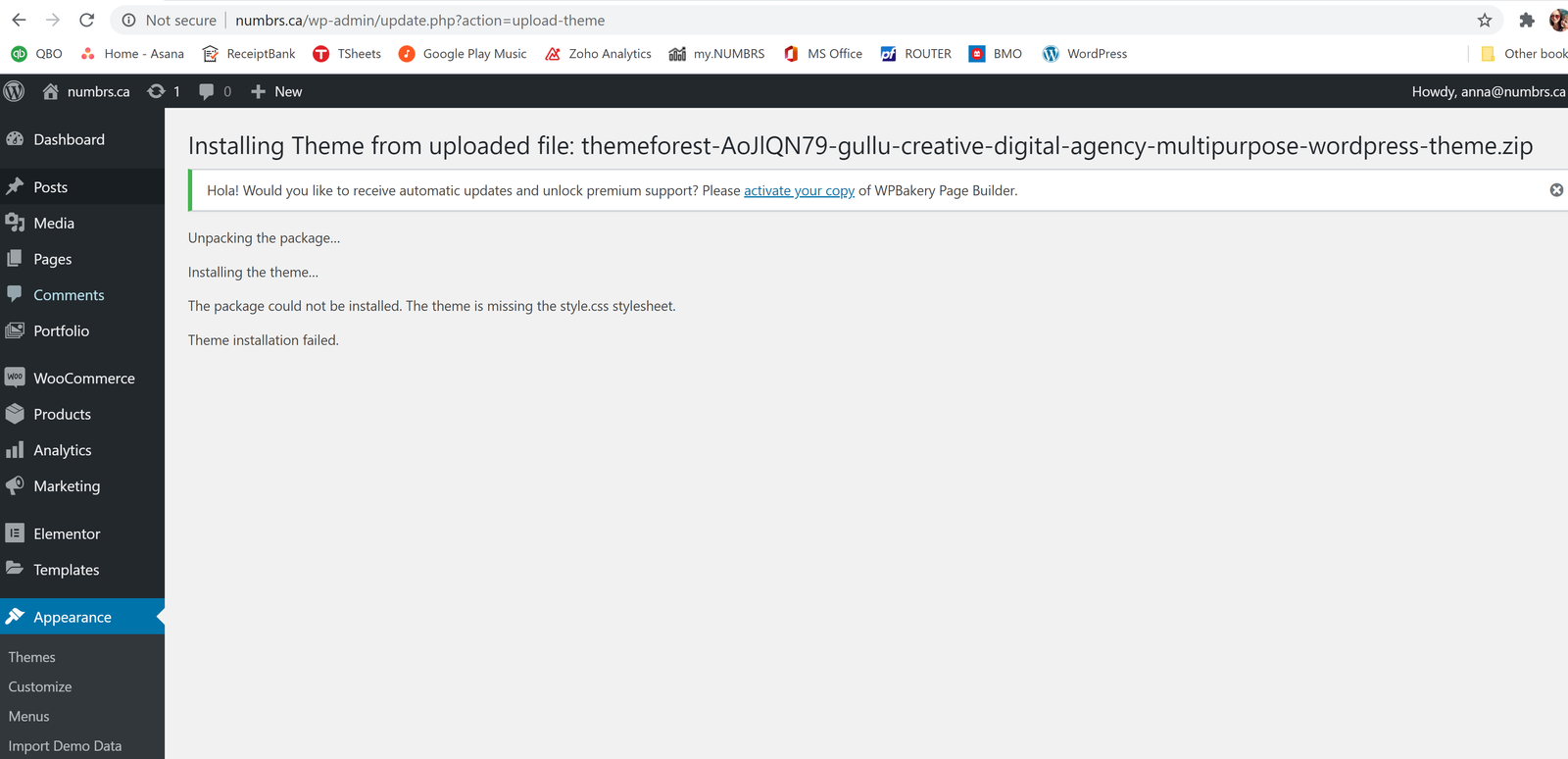 - The topic ‘Theme fails to load to WordPress’ is closed to new replies.